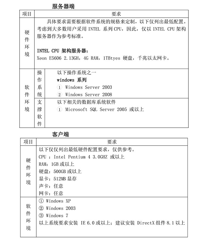 服务器,客户端软硬件配置要求...